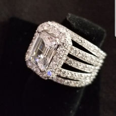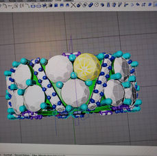 First I start with a description of sizes of stones, desired style, and specific ring sizes or other parameters. I work with CAD software to design the ring on the computer. Then the piece I designed is converted to files that the 3D printers can use to grow an actual resin model. After that the model is cast into the required precious metal. The polishers and stonesetters do their work to turn the raw casting into the beautiful sumptuous jewelry you see here! Scroll to see photos of this design process at various stages.
